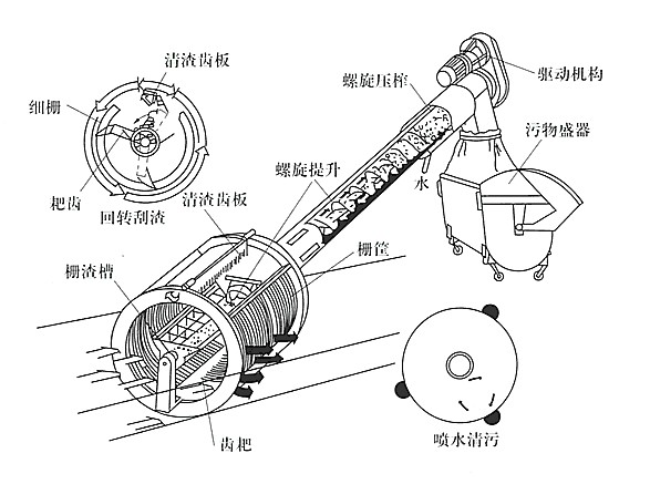 轉(zhuǎn)鼓式格柵除污機(jī)又稱細(xì)柵過濾器或螺旋格柵機(jī),是一種集細(xì)格柵除污機(jī)、柵渣螺旋提升機(jī)和柵渣螺旋壓榨機(jī)于一體的設(shè)備。