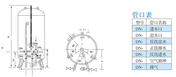 除鐵錳過濾器過濾速度:7~10m/h(單層)、10~12m/h(雙層),不超過15m/h,進水濁度:≤15mg/L;出水濁度:≤5mg/L工作溫度:常溫;工作壓力:≤0.6Mpa;反洗壓縮空氣量:18~25L/m2.S濾料層高:1000~1200mm反洗強度:15L/m2.S(單層)、12L/m2.S(雙層);反沖洗時間:4~6分鐘。